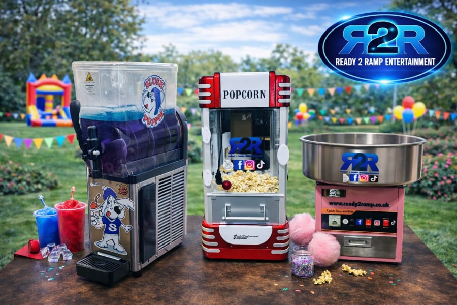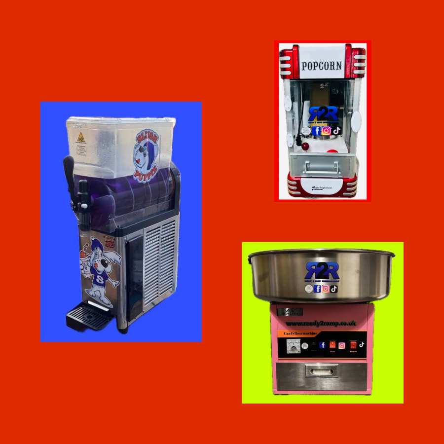 Bouncy castle Slushy-Popcorn-Candy Floss in South London surrounded area is the ultimate party add-on. Ready2ramp setup. Fast service. Bright colours. Crowd-pleasing treats that boost fun and keep guests smiling. Perfect for birthdays, school fairs, community events and corporate family days.