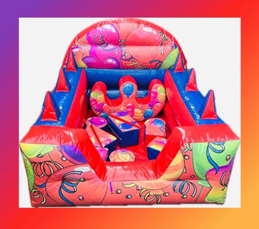 Red Balloon Party AirJuggler Size: 6ft (W) x 8ft (L) x 4ft (H) Included: Lots of colourful plastic balls and a safety mat Suitable for: Babies and toddlers up to 4 years old