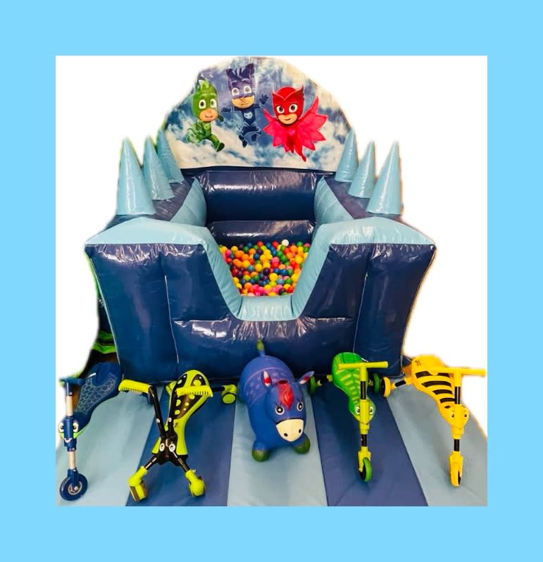 🎉 Looking to add a touch of excitement and adventure to your party or event in South East London? Look no further than our PJ Mask Blue Air Juggler with ride-ons! 🎈