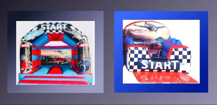 Racing Bouncy Castle & Air juggler Package for Hire in Catford, Lewisham, Bexleyheath, and Surrounding Areas