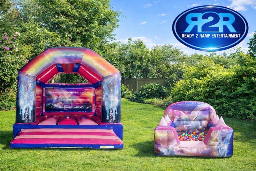 Unicorn Bouncy Castle & Air Juggler Package