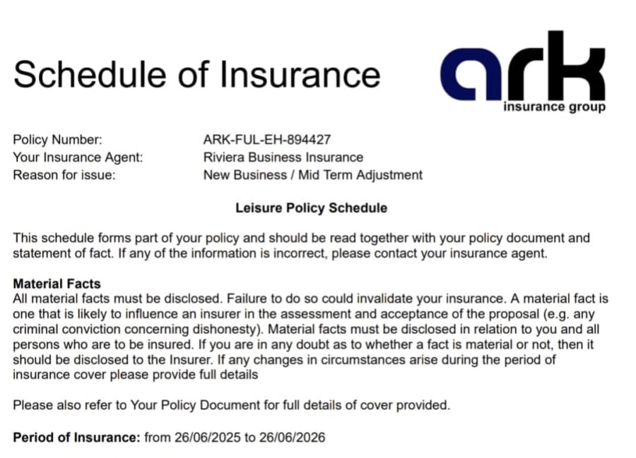 See our insurance document below: